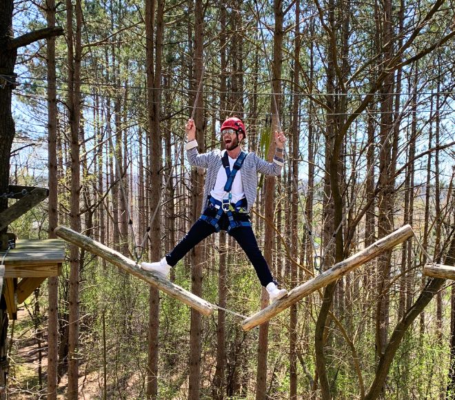 Challenge yourself mentally and physically on our 17-obstacle jungle gym in the sky.
